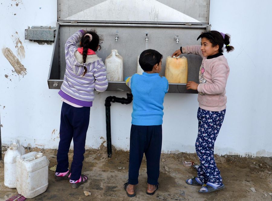 "This is a joyful day for my family and we can now get drinking water instantly and for free. We no longer need to wait for trucks selling filtered drinking water," said Abu Gouda, a father of 12, as he observed his kids filling a small water container from the new plant in front of his home.