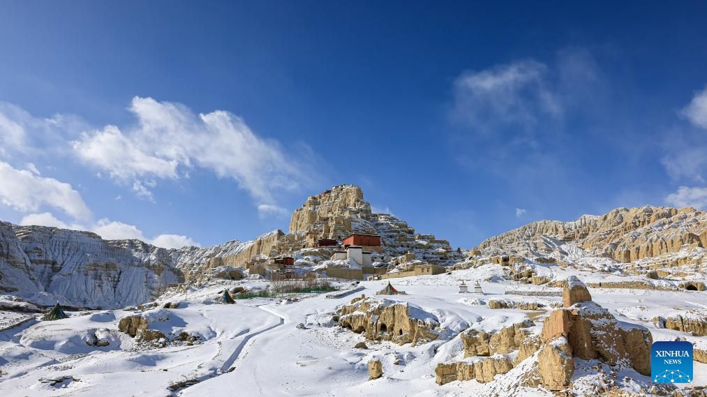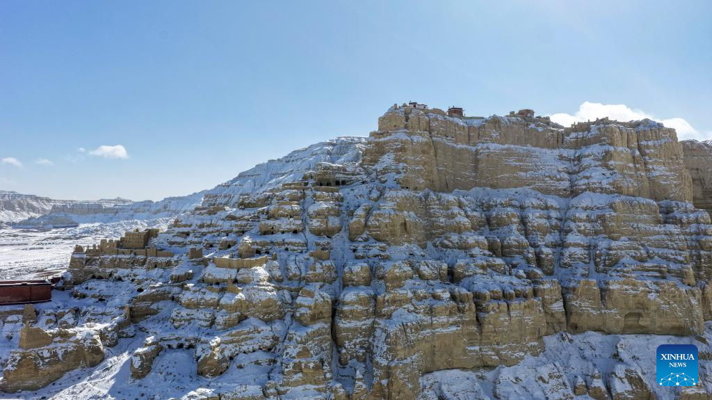 This aerial drone photo shows the ruins of the Guge Kingdom in Zanda county of Ngari prefecture, southwest China's Xizang Autonomous Region, Jan. 24, 2026. (Photo by Tinzen Tseten/Xinhua)