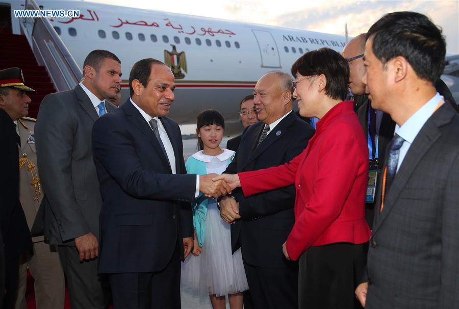 Egyptian President Abdel Fattah al-Sisi arrives for the 11th summit of the Group of 20 (G20) in Hangzhou, capital of east China's Zhejiang Province, Sept. 3, 2016. (Xinhua/Cai Yang)