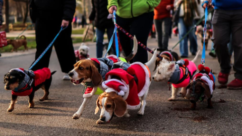 Annual "Santa Dog Walk" event held at City Park in Budapest, Hungary