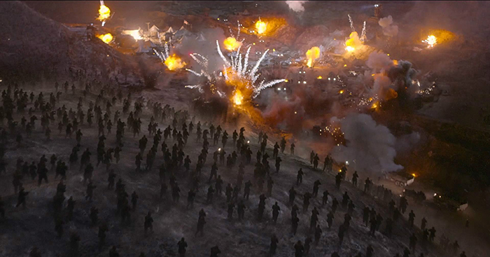 電影《長津湖》以抗美援朝戰(zhàn)爭第二次戰(zhàn)役中的長津湖戰(zhàn)役為背景,全景式還原了這場史詩戰(zhàn)役。影片出品人、總制片人,博納影業(yè)集團(tuán)董事長于冬表示:制作這部電影的意義,可謂“責(zé)任重大,使命光榮”,因?yàn)閲H上關(guān)于這場戰(zhàn)爭的描述多以西方角度為主,中國電影人有責(zé)任有義務(wù)發(fā)出自己的聲音,讓全世界知道這場戰(zhàn)役的真相。所以博納影業(yè)盡全力拍攝這部電影,其制作規(guī)模之大、制作難度之強(qiáng),都是博納影業(yè)成立以來名副其實(shí)的第一,同時(shí)也必將創(chuàng)下中國戰(zhàn)爭電影史上很多紀(jì)錄?。ㄓ浾?滕朝)