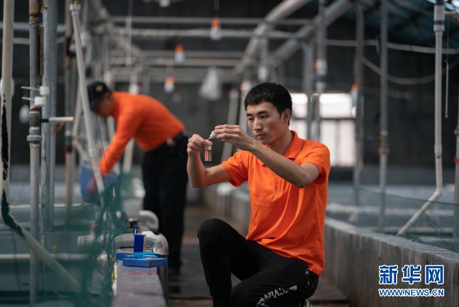 3月17日,河北省黃驊市一家養(yǎng)殖專業(yè)合作社的工人在檢驗(yàn)水質(zhì)。近年來,河北省黃驊市根據(jù)自身產(chǎn)業(yè)基礎(chǔ),瞄準(zhǔn)市場調(diào)結(jié)構(gòu),走集約化發(fā)展、產(chǎn)業(yè)化經(jīng)營的現(xiàn)代漁業(yè)發(fā)展新路,推動以水產(chǎn)育苗業(yè)、養(yǎng)殖業(yè)等為代表的現(xiàn)代漁業(yè)發(fā)展,引領(lǐng)漁民轉(zhuǎn)產(chǎn)轉(zhuǎn)業(yè)和產(chǎn)業(yè)轉(zhuǎn)型升級。目前,黃驊漁區(qū)海水育苗養(yǎng)殖企業(yè)108家,直接提供就業(yè)崗位近5000個(gè),年產(chǎn)值達(dá)8億元,現(xiàn)代漁業(yè)成為漁民增收致富的“新引擎”。