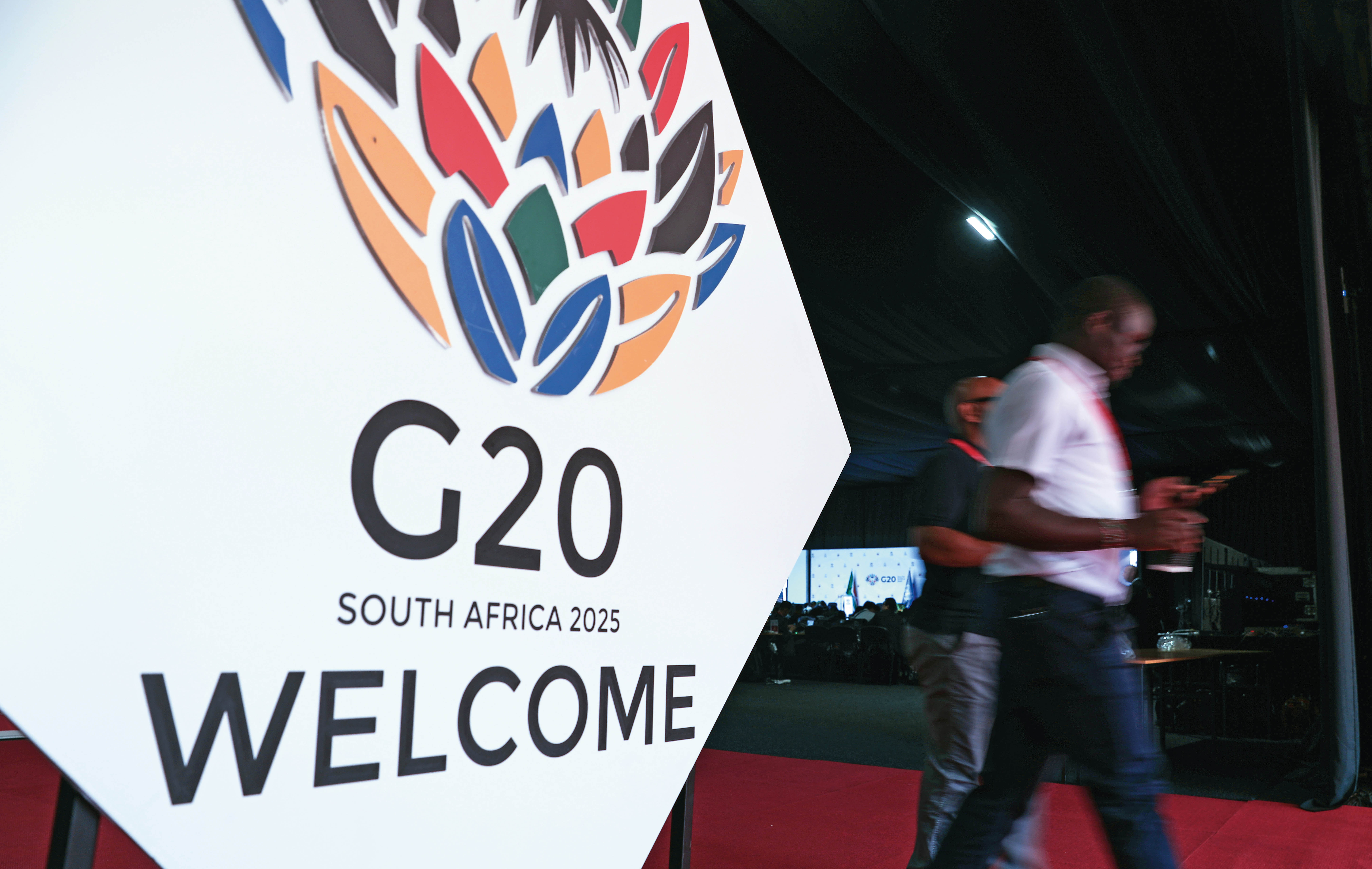 这是2025 年 11 月 22 日在南非约翰内斯堡拍摄的二十国集团领导人第二十次峰会标识