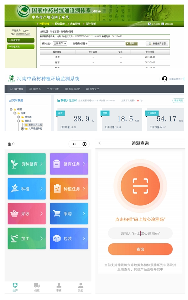 依托國家中藥材流通追溯體系、河南中藥材種植環(huán)境監(jiān)測系統(tǒng)、宛西制藥ERP信息系統(tǒng),企業(yè)建成中藥材及中成藥生產(chǎn)流通可追溯體系,實現(xiàn)從基地藥材、中藥飲片、生產(chǎn)過程、質(zhì)量檢測、市場流通全流程的業(yè)務(wù)管理和質(zhì)量溯源管理。通過機制創(chuàng)新、優(yōu)化流程,實現(xiàn)統(tǒng)一管理,滿足強化企業(yè)質(zhì)量管控。