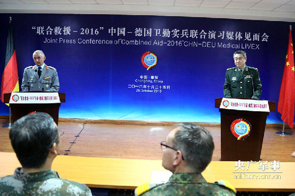????“聯(lián)合救援-2016”中國-德國衛(wèi)勤實兵聯(lián)合演習(xí)25號在重慶落幕,中德雙方參演部隊通過聯(lián)合指揮、聯(lián)合行動、聯(lián)合保障,達(dá)到共同提高應(yīng)急醫(yī)學(xué)救援能力和協(xié)同合作能力的目的, 增進(jìn)了兩軍互信。