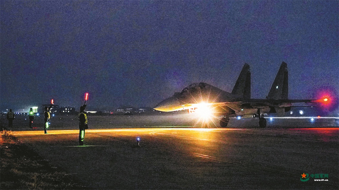 深夜,随着最后一架战机平稳着陆,这场多课目飞行训练圆满结束。(朱云龙 严浩誉 摄影报道)