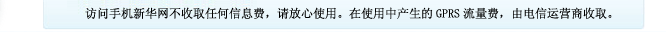 手機新華網(wǎng)是新華網(wǎng)的手機無線門戶網(wǎng)站,是中國最具權(quán)威的免費手機新聞網(wǎng)站之一。歡迎各地電信運營商以及廣告界、企業(yè)界、商務界、傳媒界等各界人士與我們聯(lián)系,精誠合作,實現(xiàn)共贏。電話:010-63070908,E-mail:xhsjb@xinhuanet.com