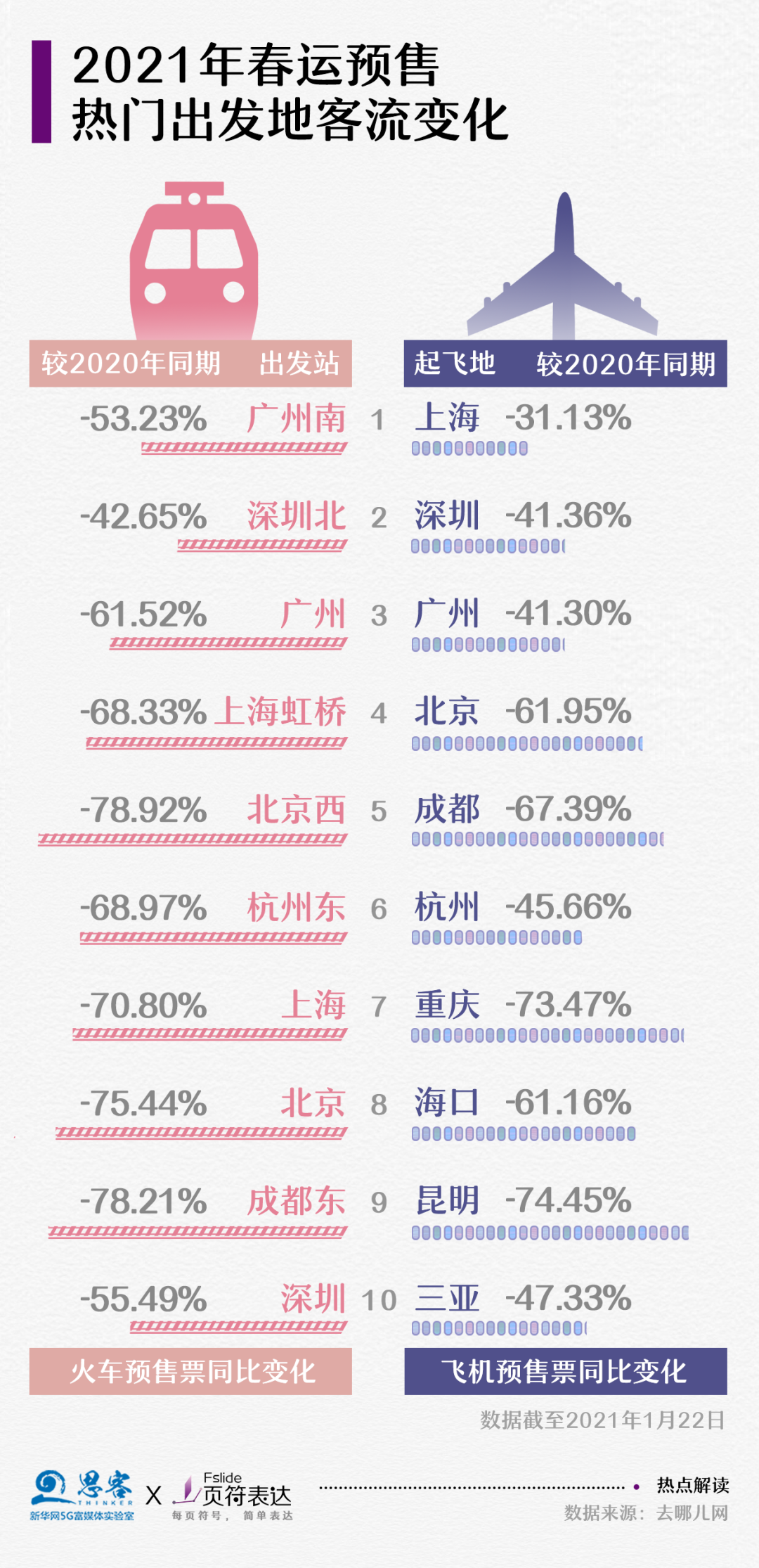 2021年春運客流驟降,“就地過年”減少了春運期間人流遷徙。根據(jù)交通運輸部門預(yù)測,2021年全國春運期間將發(fā)送旅客17億人次左右,日均4000萬人次,比2019年下降四成多,比2020年增加一成多。