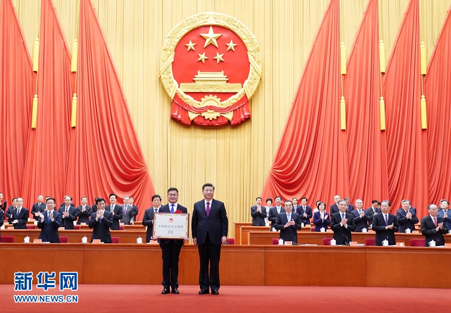 2月25日,全國脫貧攻堅(jiān)總結(jié)表彰大會在北京人民大會堂隆重舉行。這是習(xí)近平為全國脫貧攻堅(jiān)楷模榮譽(yù)稱號獲得者河北省塞罕壩機(jī)械林場頒獎。新華社記者 燕雁 攝