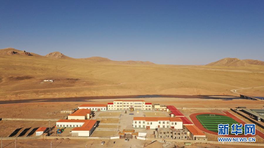 索加鄉(xiāng)寄宿小學(xué)一角(3月17日攝,無(wú)人機(jī)照片)。新華社記者 張宏祥 攝