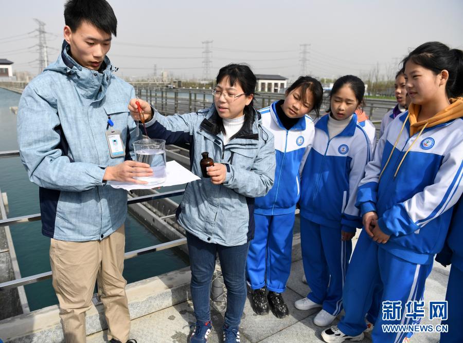 3月21日,水廠工作人員向?qū)W生演示應(yīng)急檢測(cè)過程。