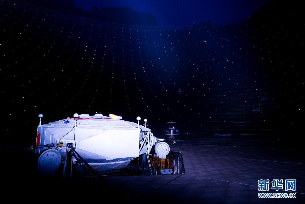 3月29日拍攝的夜幕下的“中國(guó)天眼”饋源艙。