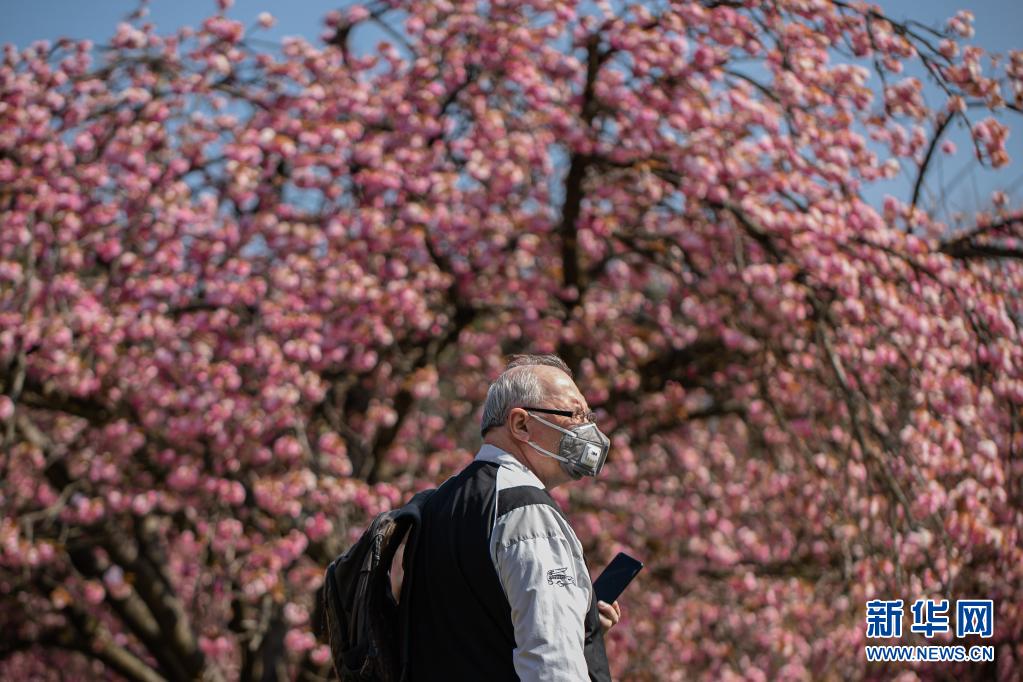 4月20日,一名男子在法國(guó)巴黎近郊的國(guó)璽公園欣賞櫻花。