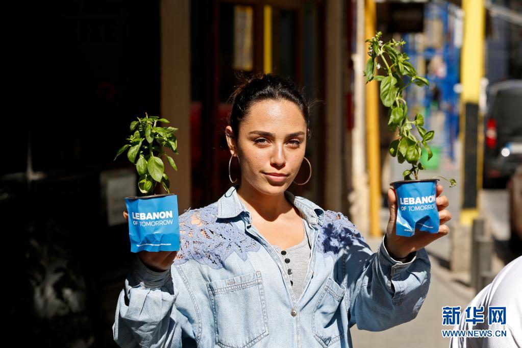當日是“世界地球日”,“明日黎巴嫩”協(xié)會在貝魯特向人們分發(fā)秧苗,提醒人們保護環(huán)境。