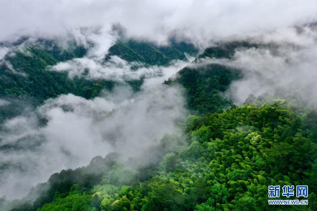 5月17日,武夷山國(guó)家公園桐木村附近群山云霧繚繞(無(wú)人機(jī)照片)。