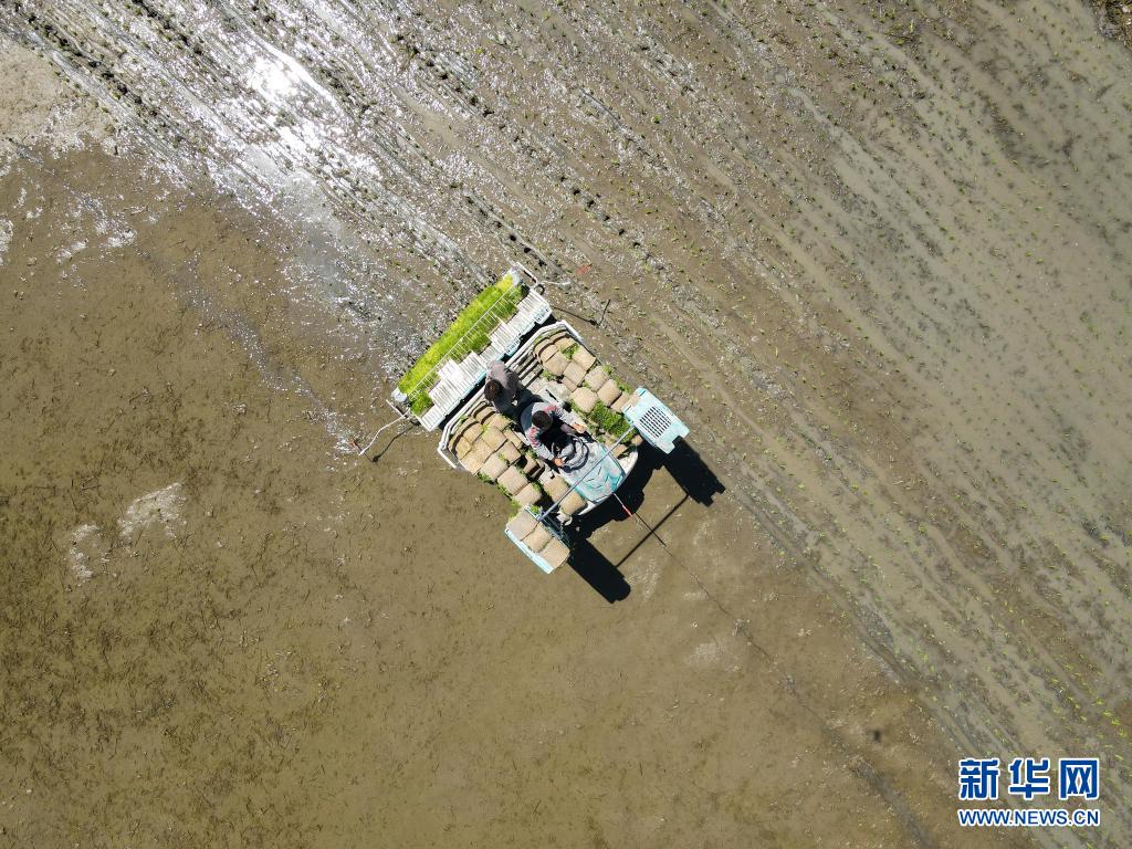 進入5月,新疆溫宿縣的11萬余畝水稻進入插秧期。稻田間,插秧機往來穿梭,一片繁忙景象。