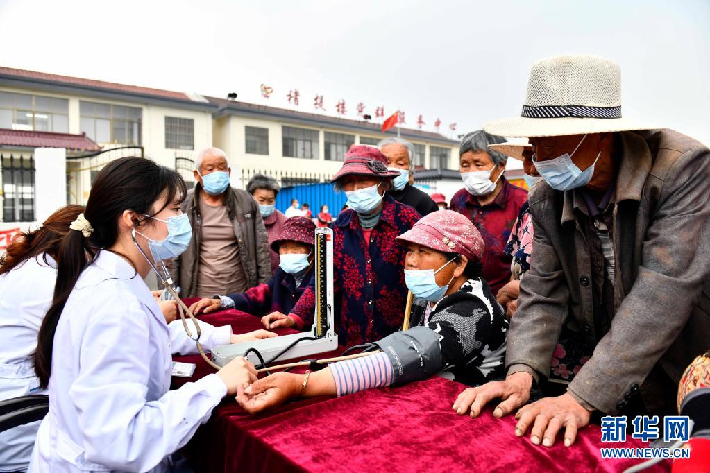 5月21日,在棗莊市臺兒莊區(qū)澗頭集鎮(zhèn)褚提樓村,“學黨史惠民”醫(yī)療小分隊為群眾開展送醫(yī)、送藥服務。