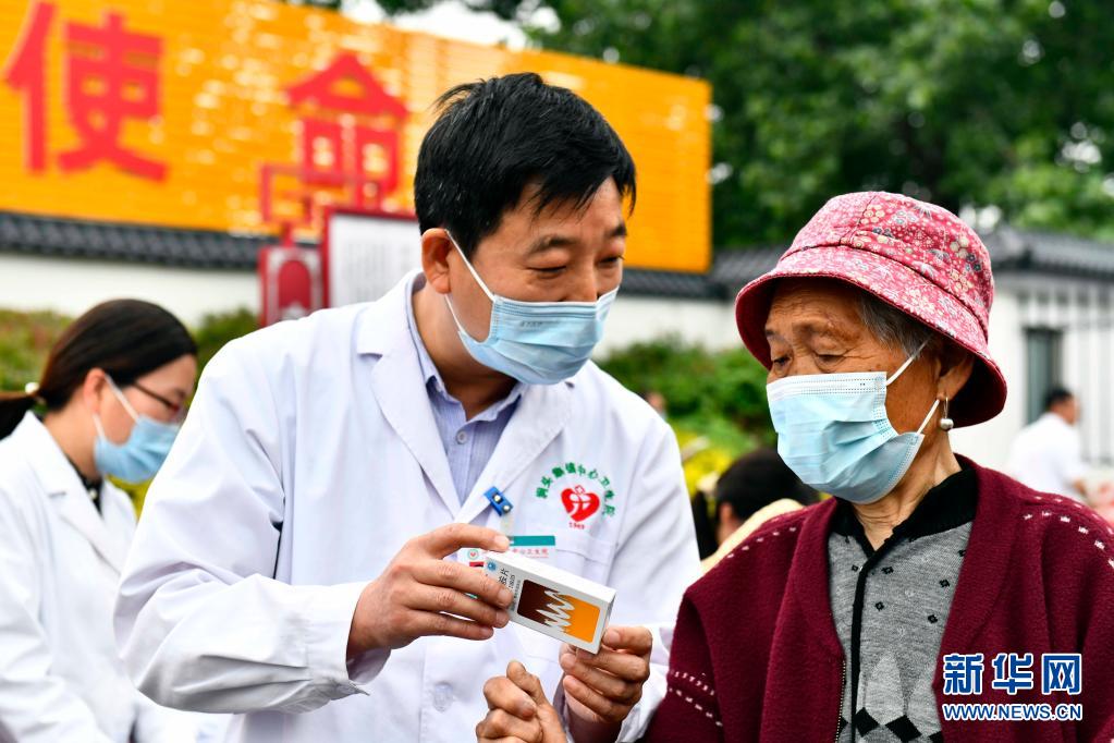5月21日,在棗莊市臺(tái)兒莊區(qū)澗頭集鎮(zhèn)褚提樓村,“學(xué)黨史惠民”醫(yī)療小分隊(duì)為群眾開展送醫(yī)、送藥服務(wù)。