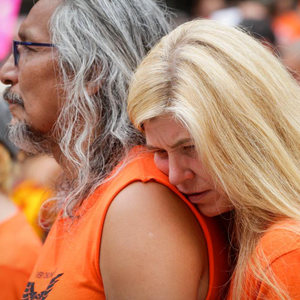 當(dāng)天是加拿大日,上千名抗議者在溫哥華集會(huì),悼念加拿大在強(qiáng)制“同化”原住民過(guò)程中遭到殘害的兒童,呼吁取消加拿大日的慶祝活動(dòng)。