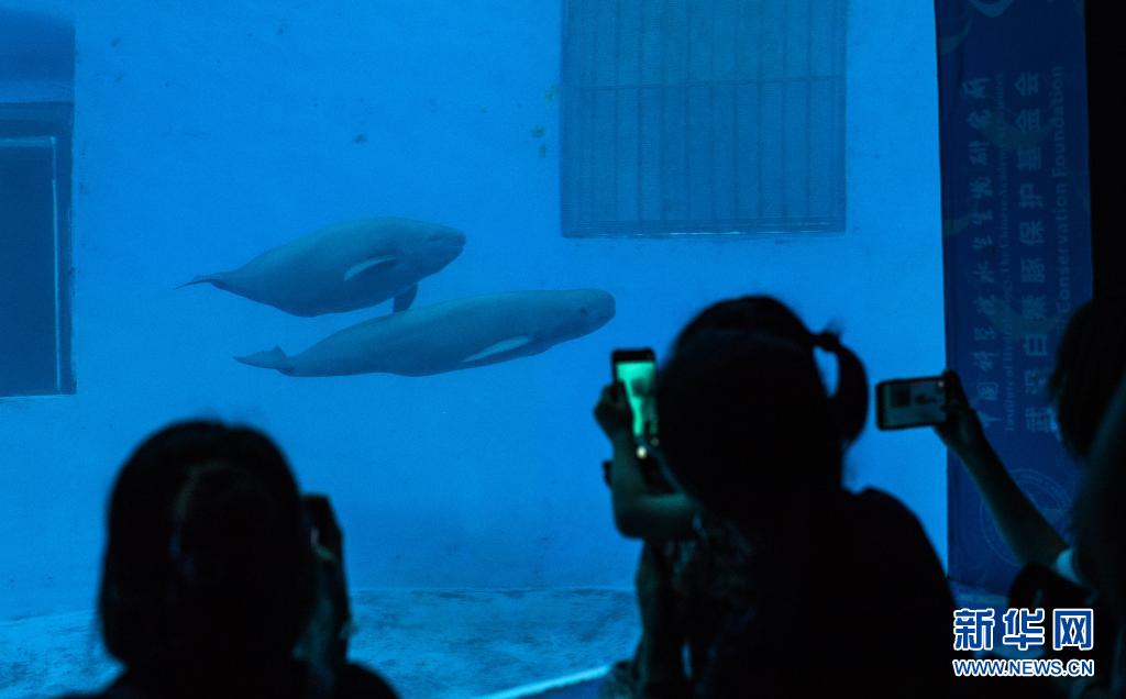 7月5日,小朋友在中國(guó)科學(xué)院水生生物研究所白鱀豚館舉行的“愛(ài)豚月”系列科普活動(dòng)上觀看這對(duì)長(zhǎng)江江豚母子。新華社記者肖藝九攝