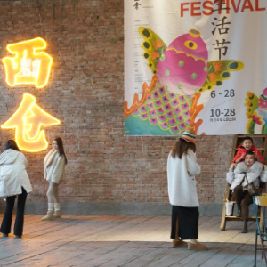 12月6日,游人在西安西仓市集文创公园内拍照游玩。这座公园由位于西安市莲湖区的老西仓市集改造而来。