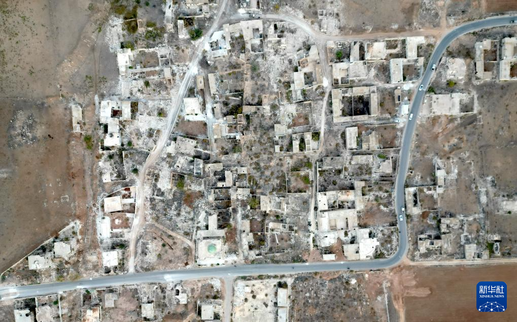这是12月4日在叙利亚阿勒颇北部的艾因达克内村航拍的被毁房屋。新华社发