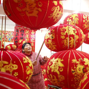 春节临近,大红灯笼迎来产销旺季,工人们忙着赶制各式灯笼,供应各地节日市场。