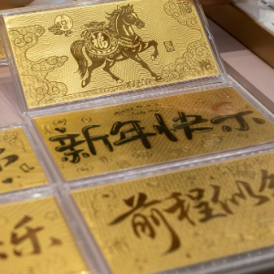 1月26日,市民在浙江省湖州市长兴县雉城街道一家商场选购黄金饰品。