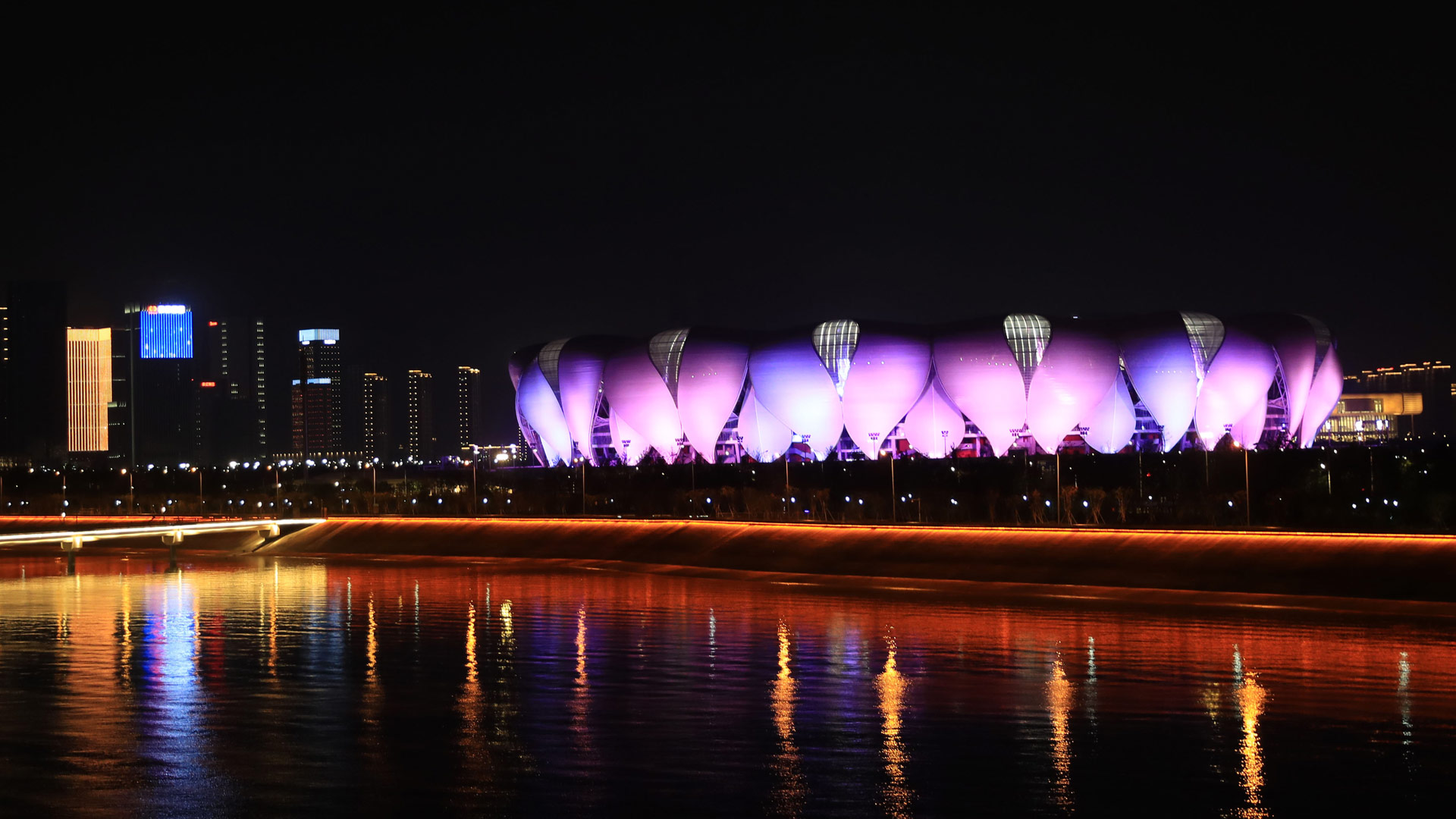 杭州奧體中心主體育場被彩燈點(diǎn)亮(8月31日攝)。新華社記者 徐昱 攝