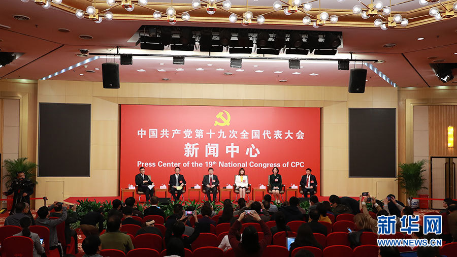 10月21日,十九大新聞中心舉辦集體采訪活動,主題為“農業(yè)科技創(chuàng)新”。圖為集體采訪活動現場。新華網 郝廣鵬攝