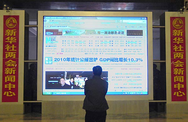 3月1日,新華網(wǎng)兩會報道人員正在布置工作間。第十一屆全國人民代表大會第四次會議、全國政協(xié)十一屆四次會議即將開幕。