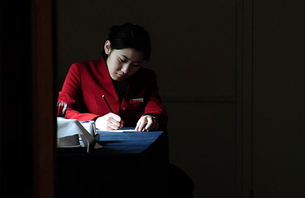 3月1日,人民大會堂工作人員正在進(jìn)行緊張的會前準(zhǔn)備。第十一屆全國人民代表大會第四次會議、全國政協(xié)十一屆四次會議即將開幕。