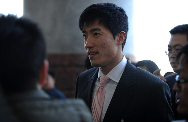 全國政協(xié)委員劉翔步入會場。3月3日,中國人民政治協(xié)商會議第十一屆全國委員會第四次會議在北京人民大會堂開幕。
