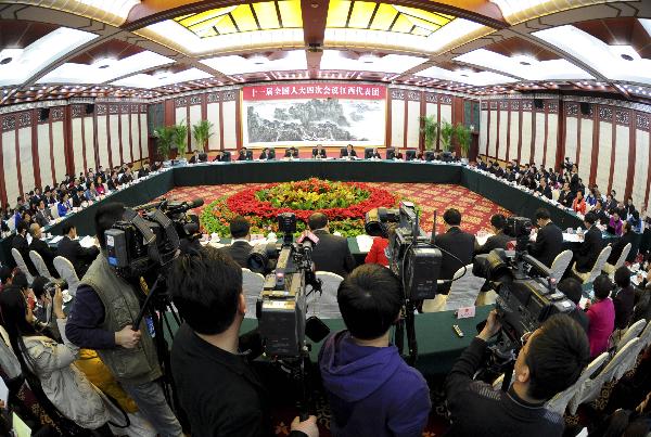 百余名記者采訪江西代表團(tuán)全體會(huì)議