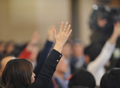 會(huì)議現(xiàn)場(chǎng)記者積極舉手提問(wèn)