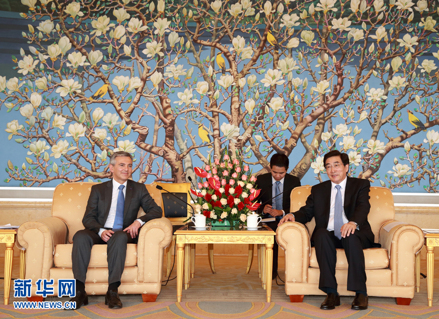 ??? 7月14日,中共中央政治局委員、北京市委書記郭金龍在北京會見馬耳他國民黨領袖布蘇蒂爾。 新華社記者 丁海濤 攝