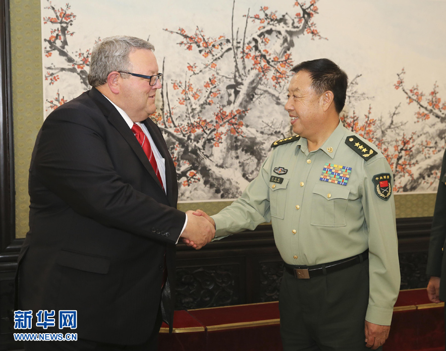??? 9月28日,中央軍委副主席范長龍?jiān)诒本┌艘淮髽菚?huì)見新西蘭國防部長格里·布朗利。 新華社記者丁林?jǐn)z