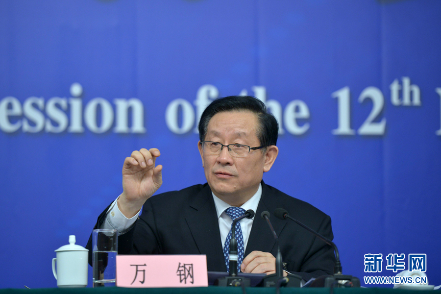 ???? 十二屆全國人大三次會議新聞中心于3月11日10時45分舉行記者會,邀請科技部部長萬鋼就科技改革與發(fā)展回答中外記者提問。圖為萬鋼回答記者提問。新華網(wǎng)/中國政府網(wǎng) 郭小天 攝