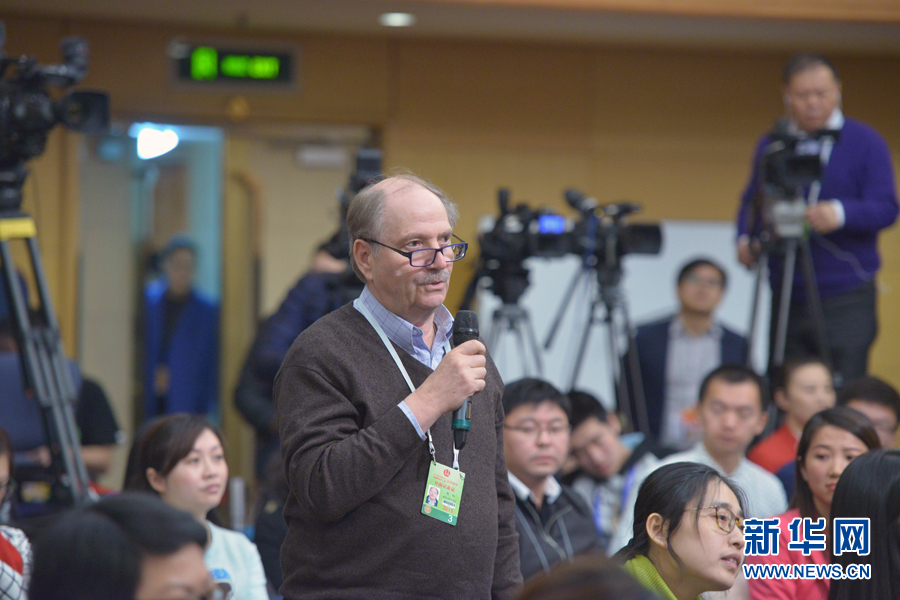 ???? 十二屆全國人大三次會議新聞中心于3月11日10時45分舉行記者會,邀請科技部部長萬鋼就科技改革與發(fā)展回答中外記者提問。圖為德國世界報記者提問。新華網(wǎng)/中國政府網(wǎng) 郭小天 攝