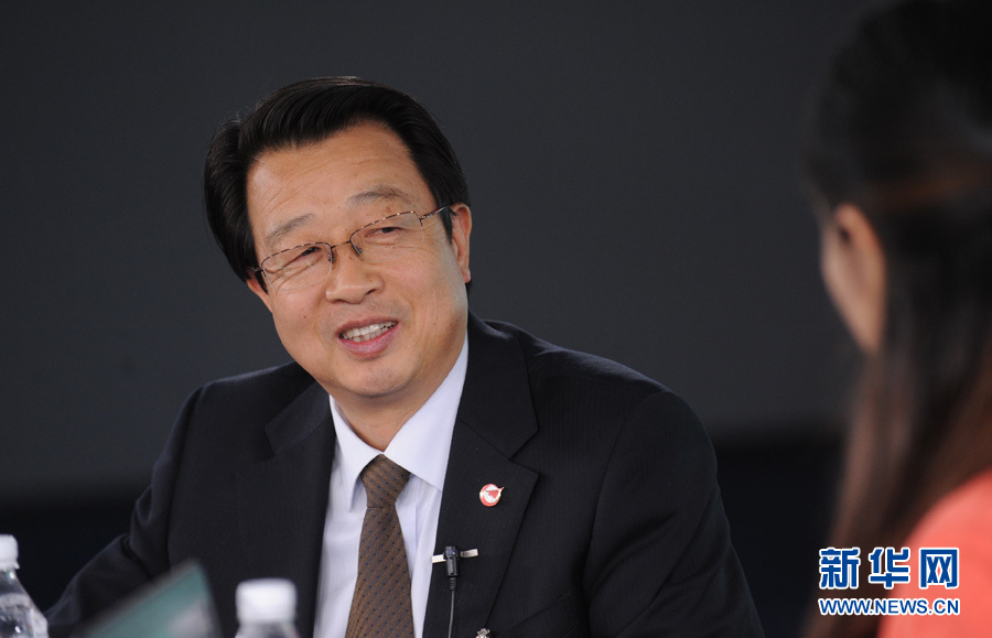 2015年3月13日,全國人大代表、中航飛機股份有限公司總經(jīng)理唐軍做客新華網(wǎng),就航空制造業(yè)面臨的機遇和挑戰(zhàn)與廣大網(wǎng)友展開交流。圖為唐軍在訪談現(xiàn)場。 新華網(wǎng) 陳競超 攝