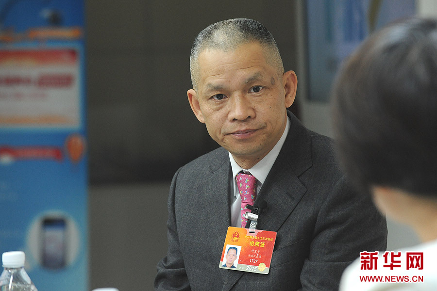2015年3月13日,全國人大代表、湖南科力遠(yuǎn)新能源股份有限公司董事長鐘發(fā)平做客新華會客廳。新華網(wǎng)?賈振 攝