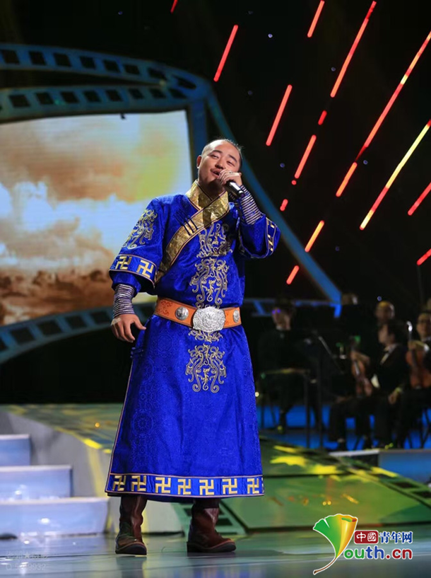 呼和牧人在《紀(jì)念中國(guó)共產(chǎn)黨成立95周年電影音樂(lè)會(huì)》演唱民歌。本人供圖