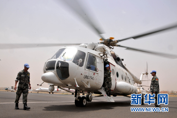 今年6月11日、12日,中國(guó)空運(yùn)先遣組24人搭乘裝載維和直升機(jī)的大型運(yùn)輸機(jī),分兩批次先后抵達(dá)喀土穆國(guó)際機(jī)場(chǎng)。據(jù)悉,首批直升機(jī)分隊(duì)配備了4架中型多用途直升機(jī),主要擔(dān)負(fù)空中巡邏、戰(zhàn)場(chǎng)偵察、人員輸送、傷員轉(zhuǎn)運(yùn)、物資運(yùn)輸?shù)热蝿?wù)。