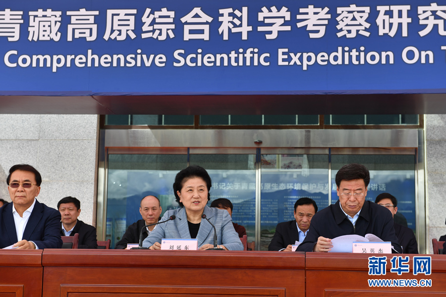 8月19日,第二次青藏高原綜合科學考察研究在拉薩啟動。中共中央總書記、國家主席、中央軍委主席習近平發(fā)來賀信,向參加科學考察的全體科研人員、青年學生和保障人員表示熱烈的祝賀和誠摯的問候。中共中央政治局委員、國務(wù)院副總理劉延東在啟動儀式上宣讀習近平的賀信,宣布第二次青藏高原綜合科學考察研究啟動。新華社記者 張汝鋒 攝