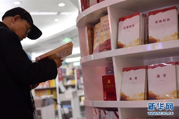 11月6日,老黨員衛(wèi)東在北京圖書大廈的七部重點專題片音像制品和圖書專架前挑選音像制品。為深入學(xué)習(xí)宣傳貫徹黨的十九大精神,幫助廣大黨員干部群眾深刻認(rèn)識十八大以來在以習(xí)近平同志為核心的黨中央帶領(lǐng)下,黨和國家事業(yè)取得的歷史性成就和發(fā)生的歷史性變革,中央宣傳部、國家新聞出版廣電總局組織出版了《將改革進(jìn)行到底》《法治中國》《巡視利劍》《大國外交》《輝煌中國》《強(qiáng)軍》《不忘初心繼續(xù)前進(jìn)》七部重點電視專題片的音像制品和同名圖書,作為學(xué)習(xí)宣傳貫徹黨的十九大精神的重要輔助和參考資料。新華社記者 金良快 攝