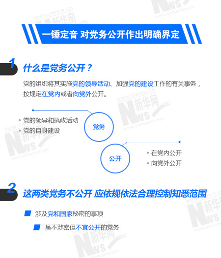 長期以來,關(guān)于什么是黨務(wù)公開,理論上和實踐中有一些不同觀點?!稐l例》對此作了明確界定,即黨務(wù)公開是指黨的組織將其實施黨的領(lǐng)導(dǎo)活動、加強(qiáng)黨的建設(shè)工作的有關(guān)事務(wù),按規(guī)定在黨內(nèi)或者向黨外公開。而且《條例》還規(guī)定了除涉及黨和國家秘密不得公開、依照有關(guān)規(guī)定不宜公開的事項外,一般應(yīng)當(dāng)公開。