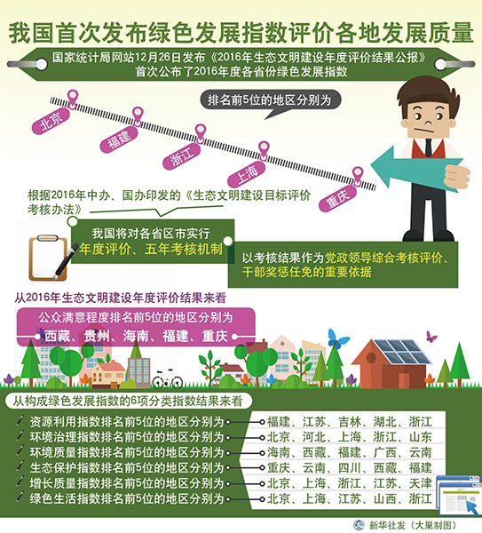 圖表:我國(guó)首次發(fā)布綠色發(fā)展指數(shù)評(píng)價(jià)各地發(fā)展質(zhì)量 新華社發(fā) 大巢制圖