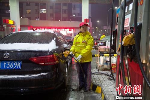 資料圖:加油站工作人員給車輛加油。中新社記者 張?jiān)?攝