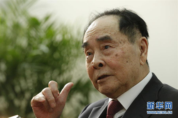 侯云德院士(左)在實(shí)驗(yàn)室與學(xué)生交流(2017年12月27日攝)。新華社記者 張玉薇 攝