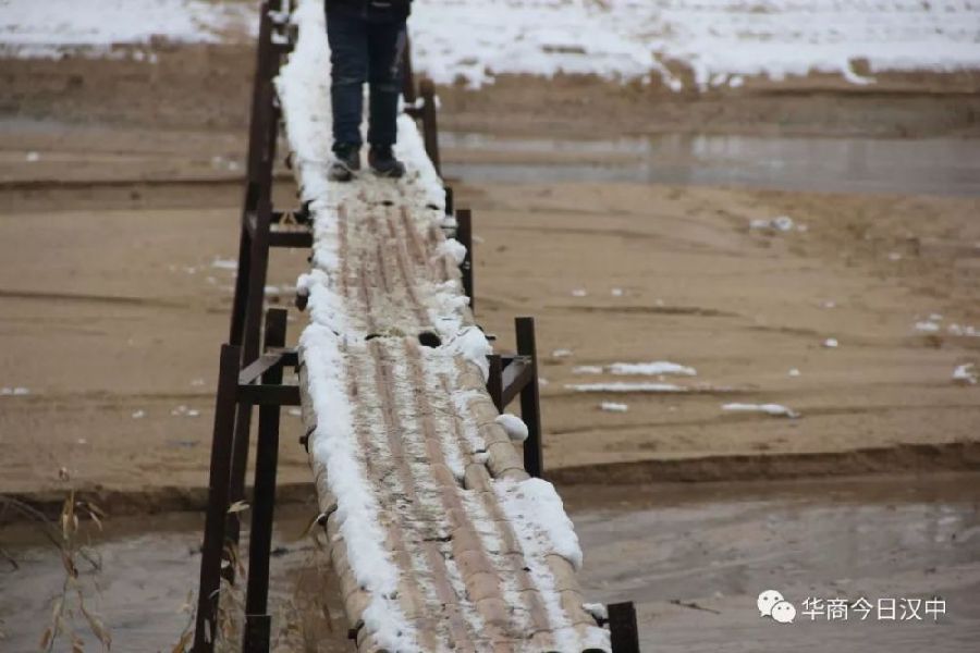 竹橋橋面結(jié)滿冰碴子,如同走在結(jié)冰的陶瓷地板上。